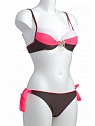 Стильное эффектное бикини. Лиф с эффектом "push-up" с формованной чашкой на каркасах оформлен удобной застежкой и регулируемыми бретелями, декорирован брошью. Плавки комфортной посадки с завязками. Отличный пляжный вариант.