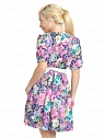 Симпатичное отрезное платье со сборками по линии талии. Модель оформлена ярким цветочным принтом, округлый вырез горловины, короткими рукава, широкий контрастный пояс из эко-кожи, сбоку застёжка на молнию. Длина платья - 90 см..