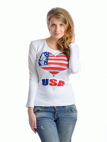 Лонгслив с оригинальным принтом "USA сердце". Круглый вырез, длиный рукав, 100% хлопок.